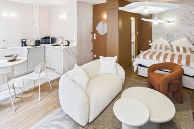 Treat yourself to a well-deserved break in this charming studio in the heart of Troyes. This thoughtfully decorated cocoon, adorned with warm terracotta tones, combines comfort and elegance to offer you a truly refreshing and unforgettable experience. ✨ Prime location: right in the city center ✨ Fully equipped for a comfortable and worry-free stay There’s construction in the building!