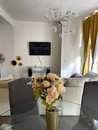 ✨ Une grande pièce de vie lumineuse, parfaite pour partager des instants chaleureux en famille. Le canapé convertible invite à un moment de détente, aussi délicat qu’un champagne servi à la bonne température.
